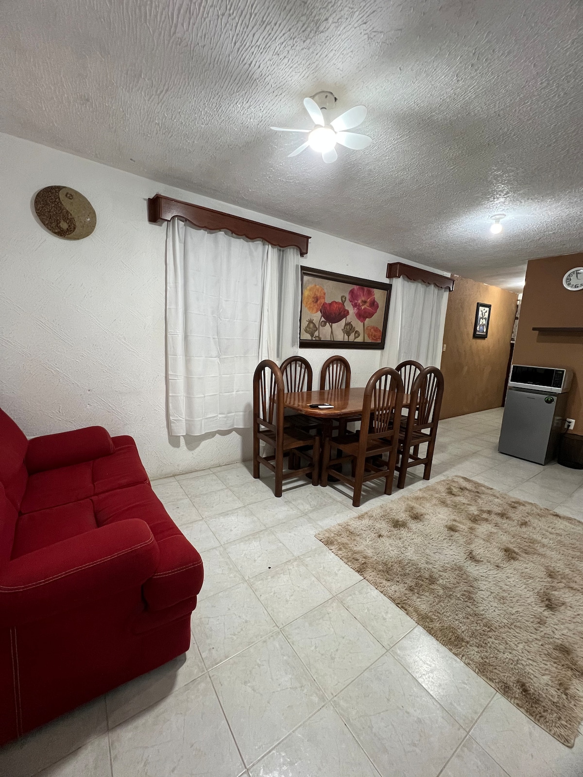 Disfruta de una estancia cómoda y relajante en esta linda casa ubicada en una zona residencial segura y bien comunicada. El espacio cuenta con una sala acogedora para descansar, un comedor para seis personas y una decoración cálida que te hará sentir como en casa. La casa está equipada con todo lo necesario para una estancia placentera, ideal tanto para familias como para viajes de trabajo o descanso. A pocos minutos encontrarás tiendas y todo lo que puedas necesitar durante tu estancia.