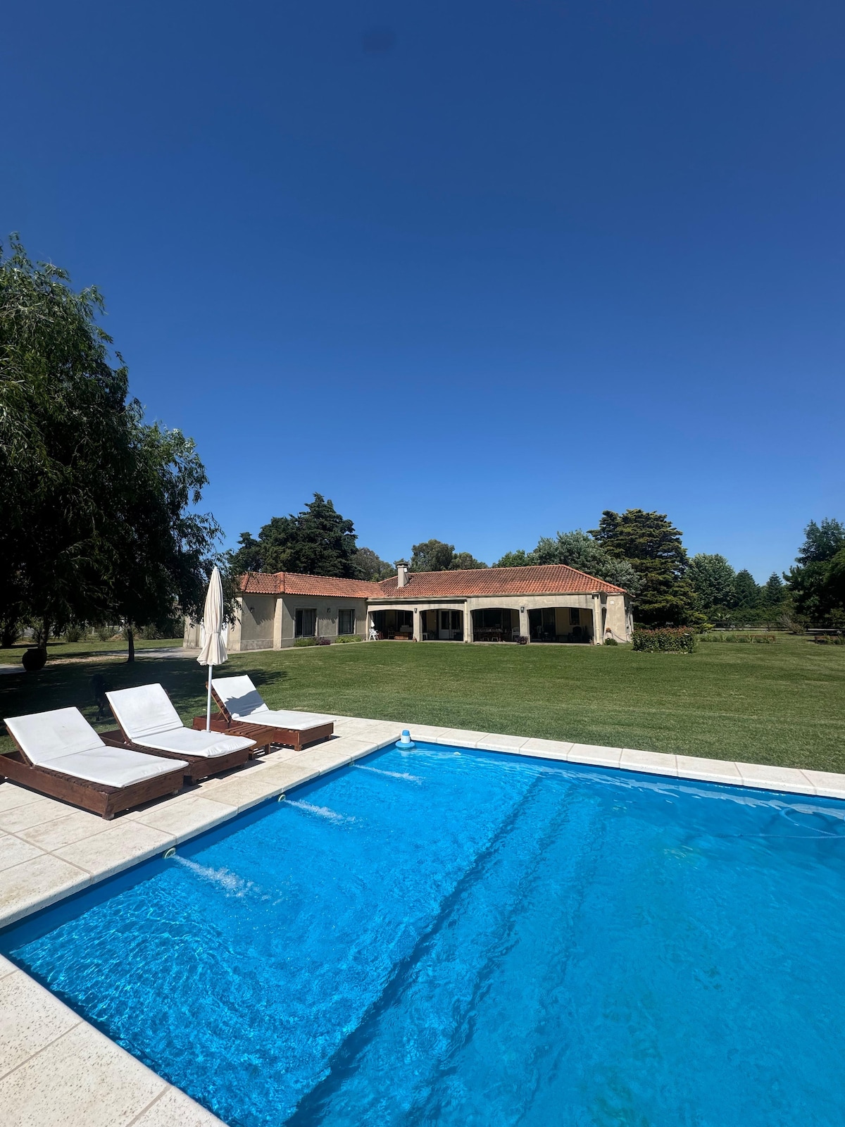Relajate en este alojamiento de casa campestre dentro del "Club de Campo" (seguridad 24hs con vigilancia de cámaras térmicas en todo el perímetro del barrio, además de rondas de PolAd) con todas las comodidades de la vida moderna, pileta (8 mts de largo), una increíble vista y hermosos atardeceres. Relajáte en el campo a sólo 50 min de Bs. As. y 15 min de Pilar! único y tranquilo. Espacio de pernocte para 10 personas. Comodidades y espacios hasta 16 personas (como máximo) para pasar el día.