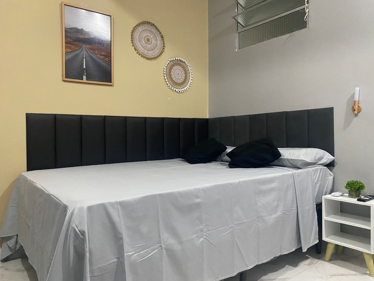 Denne atelierlejlighed er designet til dem, der søger funktionalitet og komfort i et kompakt og velplanlagt rum. Alt i et rent, organiseret, roligt og godt oplyst miljø, ideelt til afslapning efter en dag i byen. privilegeret beliggenhed, lige i centrum! Tæt på alt, hvad du har brug for i hverdagen. Supermarkeder, pladser, vaskerier, kirker, banker, shopping, handel, messer, Hangar (kongrescenter). Du kan gå til fods eller tage en Uber, som tager 5-7 minutter.