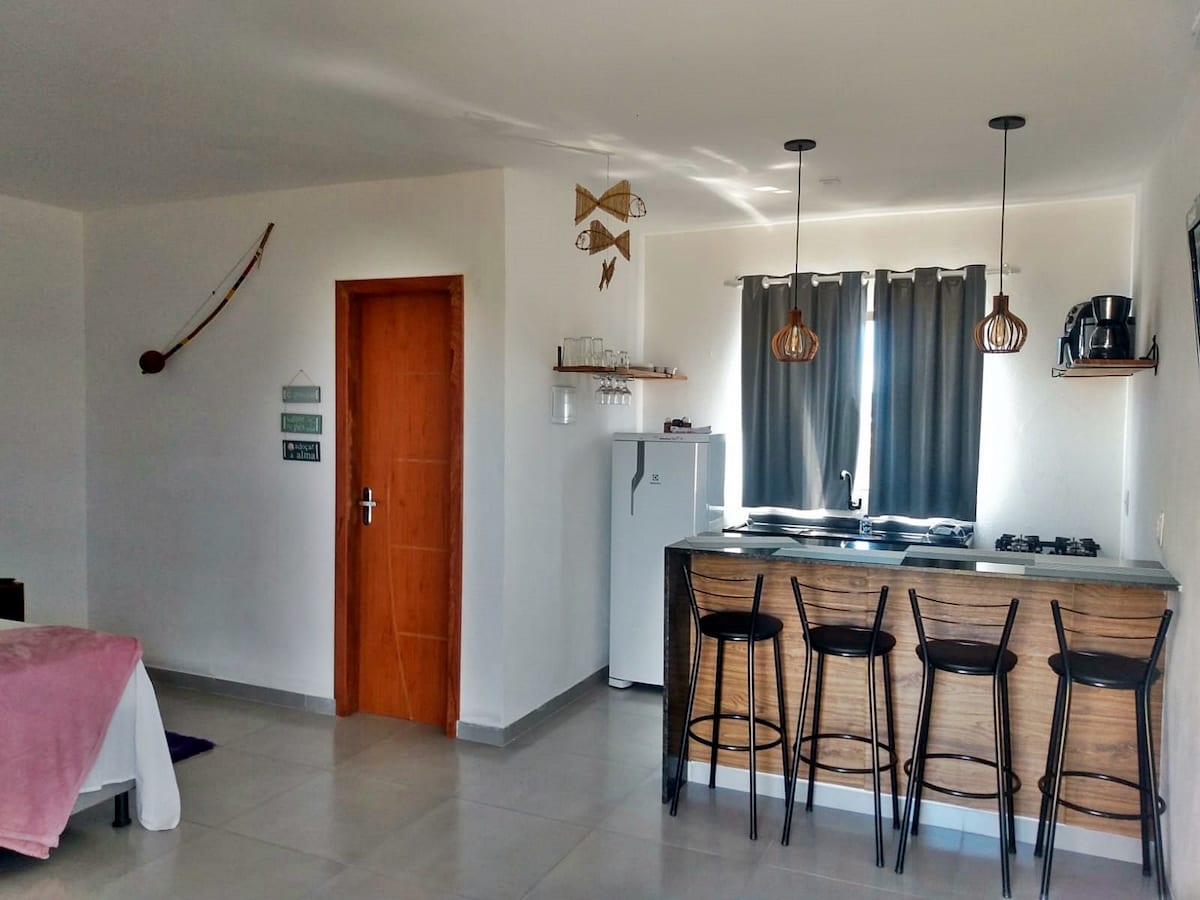 Nyd charmen og det moderne ved vores lejlighed i sæsonen, der ligger på Taipu de Fora-stranden ca. 600 meter fra stranden. Lejlighed med plads til op til 4 personer. Komplette og møblerede redskaber til køkken, aircondition, sengetøj. Det perfekte sted til din fritid her.. Taipu de Fora-Peninsula Beach of Maraú Bemærk: Lejlighed på 1. sal. Stueetagen er en bolig.