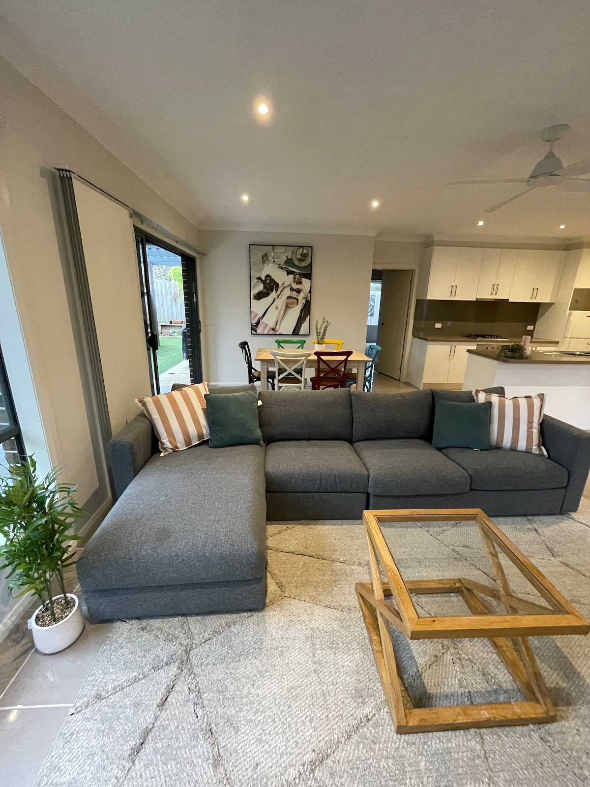 Velkommen til vores skønne, rummelige strandhus, hvor du kan slappe af og nyde Ocean Grove og udforske Bellarine. Beliggende i en stille gade, 15 minutters gang (1,2 km) til stranden og strandcaféen, hotellet og et par minutter fra de vigtigste butikker og faciliteter. Perfekt til 1 eller 2 familier, der er masser af indendørs og udendørs plads. 3 soveværelser + 4. køjesengværelse/filmrum, 2 badeværelser, 8 sovepladser. Slap af i den rummelige baghave med stort udendørs underholdningsområde og grill.