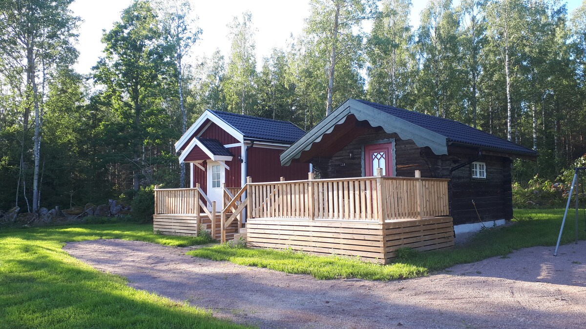 Meget landligt og smukt beliggende "sommarstuga" med eget område på vores gård, ca. 22 minutter fra Katthult. Omgivet af skov og enge kan du slappe af her på vidunderlig vis. Hytten er udstyret med et veludstyret tekøkken, udendørsbruser med varmt vand og et tørt toilet lige ved siden af hytten. Komfortabel 160-seng, tv, wi-fi og spisebord indenfor og udenfor. Håndklæder og sengetøj er inkluderet. Der er heste, høns og en hund på gården.