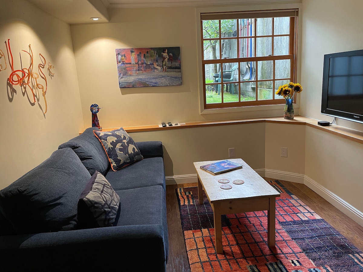 Nyd en stilfuld oplevelse i denne centralt beliggende bolig i Pacific Heights. Bedste nabolag i San Francisco! Nyt sted med 1 soveværelse/1 badeværelse med queensize-seng med tv plus kombineret stue og spisestue, køkken… Luftmadras til to personer til rådighed, der kan bruges i stuen. Vaskemaskine/tørretumbler. Gadeparkering tilgængelig. Gå til Fillmore street, Sacramento Street, Union Street, Chestnut Street, Presidio, Lyon St. steps. Vi er få blokke fra Alta Plaza Park og fra Hotel Drisco. Min familie og to hunde bor ovenover! De gør :)
