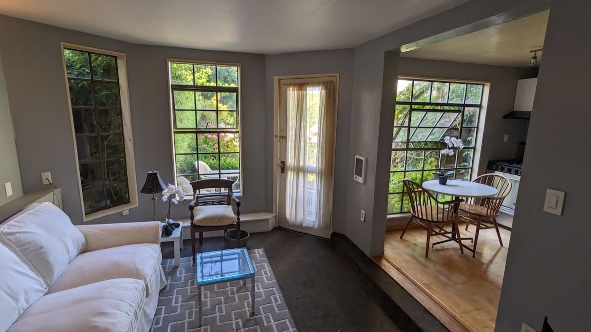 Private Studio with a beautiful view, surrounded by urban nature. The studio is cozy and cabin-like with everything you need to enjoy your visit. The neighborhood is peaceful and quiet for a city setting. Duboce Triangle is a gorgeous, central neighborhood in San Francisco and arguably one of the best! Our walking score is 98. Enjoy Victorian houses and tree-lined walks to coffee shops, parks, restaurants, fitness studios, events, work, and easy access to public transit for all the sightseeing.