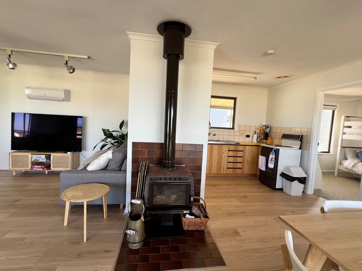 Sunset Lodge – dit hjem væk fra hjemmet Denne sensationelle hytte ved stranden ligger gemt væk i en stille gade i Hardwicke Bay. Gå ind ad sideporten, så er der kun en kort gåtur til kysten. Stedet er fuldt møbleret og så veludstyret, at alt, hvad du virkelig har brug for, er dit tøj! Har du en båd? Tag den med! Der er masser af sikker parkering på stedet. Med stranden så tæt på er vandaktiviteter som fiskeri, squiding, kajakroning, snorkling og svømning lige uden for døren. Udforsk klippebassinerne ved solopgang, og se tidevandet komme ind ved solnedgang, mens du nipper til en vin eller to med uafbrudt udsigt. Nyd middage tilberedt over grillen med den gratis kogeplade på dækket, eller tag til et af de mange lokale spisesteder som Caffé Primo i nærliggende Minlaton eller Tavern på Turton i den populære by Point Turton, begge ca. 15 minutters kørsel væk. Med 3 rummelige soveværelser bestående af :- · en queensize-dobbeltseng med havudsigt i værelse 1 · en queensize-dobbeltseng med barneseng på værelse 2 · og to sæt enkeltsenge, der er ideelle til børn og teenagere i værelse 3 Alle værelser har den ekstra komfort som loftsventilatorer, mens værelse 3 også er blevet gennemtænkt udstyret med bøger, legetøj og lampelys monteret over de øverste køjer, så dine børn kan hygge sig med at læse i lidt tid. Hvert rum har vattæpper og betræk samt puder. Du behøver kun at medbringe dine egne lagner og pudebetræk. Huset har også en vaskemaskine og opvaskemaskine for nemheds skyld. Og ud over håndklæder er alt andet dækket! Uanset hvilket tidspunkt på året du besøger det omvendte split-system med klimaanlæg i hovedloungen, vil det holde dig kølig og hyggelig på de varme sommerdage og kolde vinternætter. Læn dig tilbage og slap af med en film på dvd-afspilleren med masser af familievenlige muligheder at vælge imellem eller kigge på nogle melodier ved hjælp af ministereoeren. Og hvis du foretrækker lidt skærmfri sjov, kan du hjælpe dig selv med at samle brætspil. For en dejlig, stressfri ferie med din familie eller venner kan du opdage, hvorfor denne skjulte perle er det perfekte sted og et sted, du kalder et hjem væk hjemmefra. Vil du tage din lodne ven med? Vi kan gøre det efter forudgående aftale. Spørg om reglerne for kæledyr, inden du booker. Bemærk, at huset ikke er indrettet til otte voksne. Af hensyn til jeres komfort bedes I undlade at foretage en booking for 8 voksne. Book nu for at sikre dig dine datoer, og forhør dig om vores særpriser. Vi ser frem til at tage imod din næste rejse. Heidi