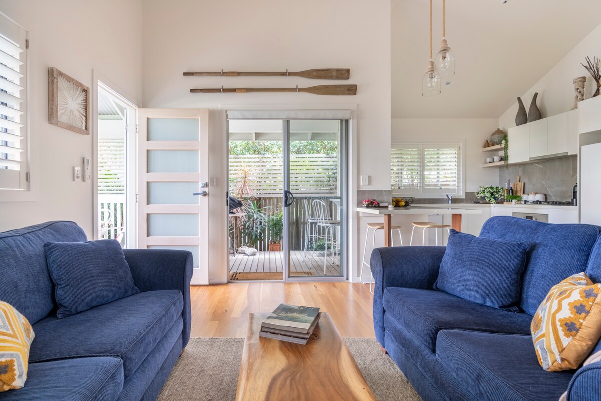 Så snart du træder gennem porten, mærker du den afslappede Byron-stemning! Det er 2 minutter gang til Baz & Shaz's 'spisekammer', 7 minutter til Suffolk landsby, og 15 minutter til Tallow Beach. Det travle Byrons centrum ligger 10 minutters kørsel væk. Suiten har en dobbeltseng i kingsize, eget badeværelse, privat indgang, privat veranda og gårdhave med bord og stole og et skrivebord i en krog. Der er et køkkenskab med mikrobølgeovn, minikøleskab, brødrister, kedel og service, der er velegnet til morgenmad og takeaway.