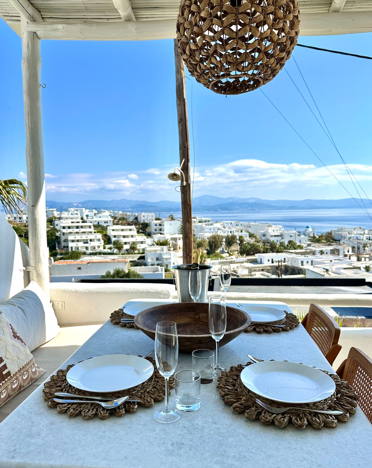 Åbn de havblå skodder, og lad den kølige brise komme ind, og lav derefter en snack ved den urbane betonkøkkenbordplade i et luftigt tilflugtssted ved havet. Træd ud på den rummelige, løvfyldte veranda for at nyde en drink i solnedgangen med uhindret havudsigt. Lejligheden ligger ved siden af en sandstrand, hvor du kan svømme om morgenen, og 2 minutters gang fra centrum af Naousa og dens hovedtorv. Butikker, restauranter, barer og klubber ligger inden for gåafstand, men området er meget stille og roligt.