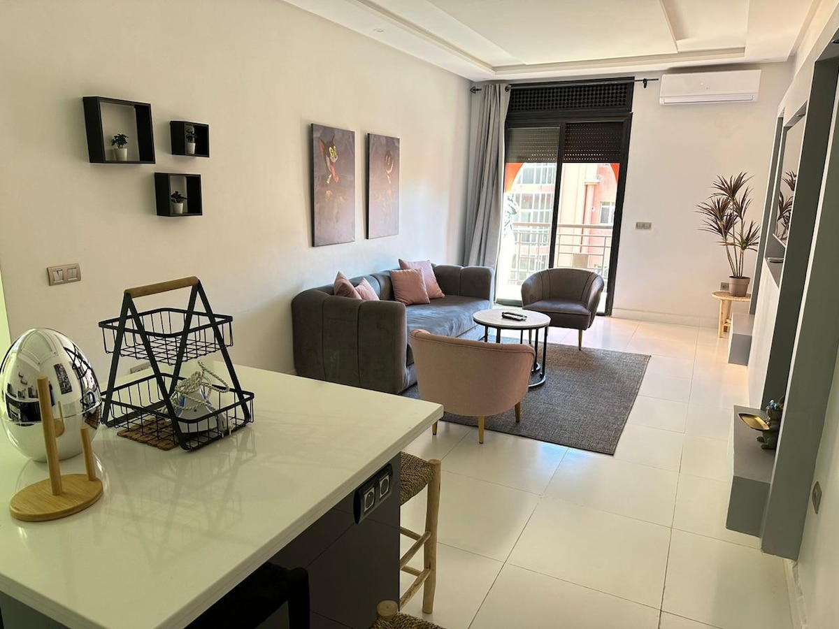 ✨Familier og Marrakesh – Elegance, plads og ro Denne rummelige lejlighed er designet til familier, der søger komfort og raffinement, og den tilbyder en smart og indbydende atmosfære. Den lyse stue indbyder til fælles øjeblikke, det elegante soveværelse sikrer fredelige nætter, og det funktionelle spiseområde gør hverdagen med børn lettere. Denne fuldt udstyrede lejlighed ligger i et roligt område og er et sandt førsteklasses fristed, hvor du kan slappe af og opleve Marrakech i dit eget tempo.