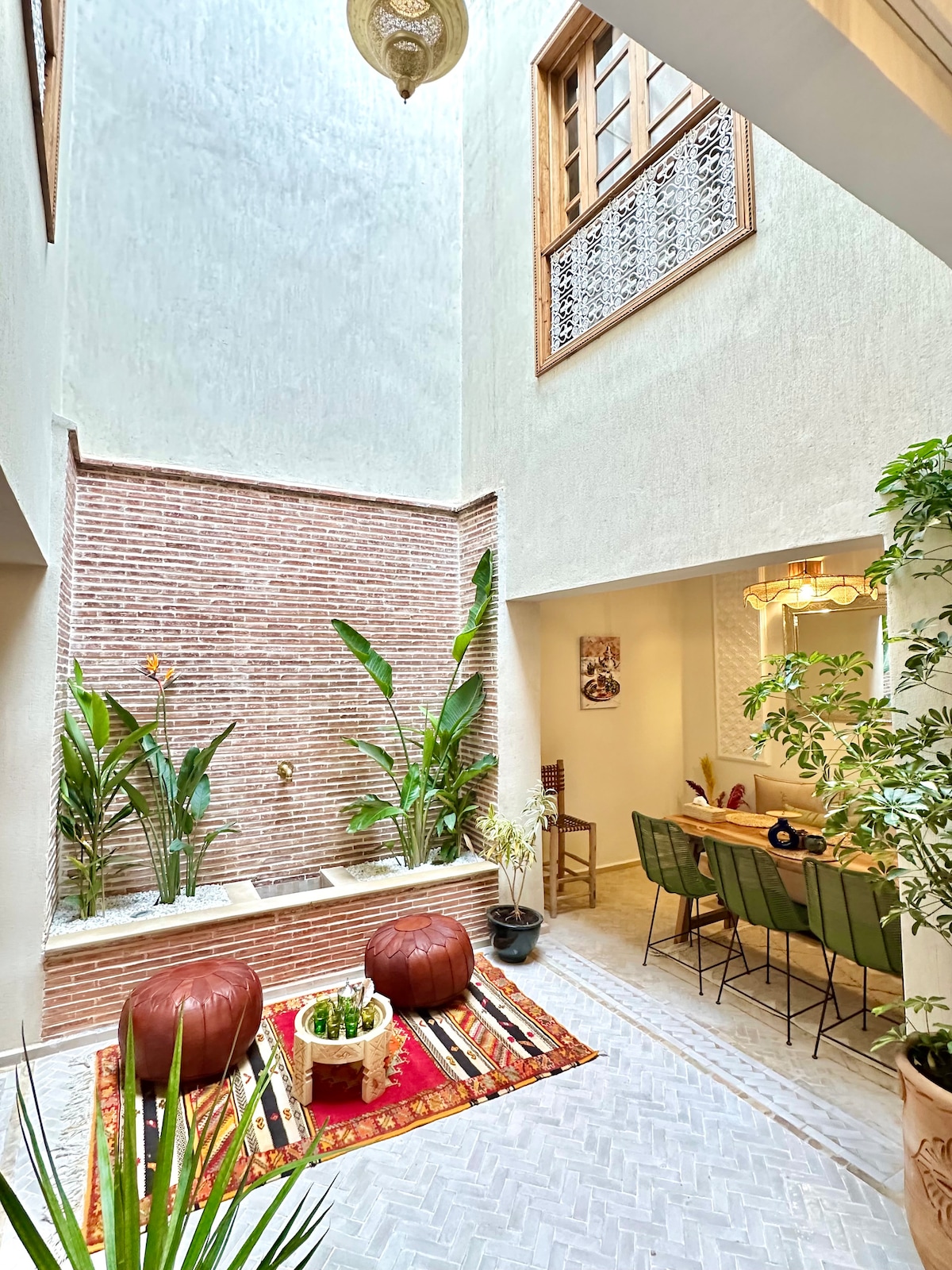 Enjoy a stylish and comfortable stay in this beautifully designed 3-bedroom riad, ideally located a 5-minute walk from Jemaa el-Fnaa. The entire house is yours, with three ensuite bedrooms featuring AC and heating, high-speed 200 Mbps Wi-Fi, a fully equipped kitchen, washing machine, and two rooftop terraces with an outdoor shower and day bed. Calm, central, and easy to reach—ideal for families, friends, or couples exploring Marrakech. Breakfast can be arranged on request with one day’s notice.