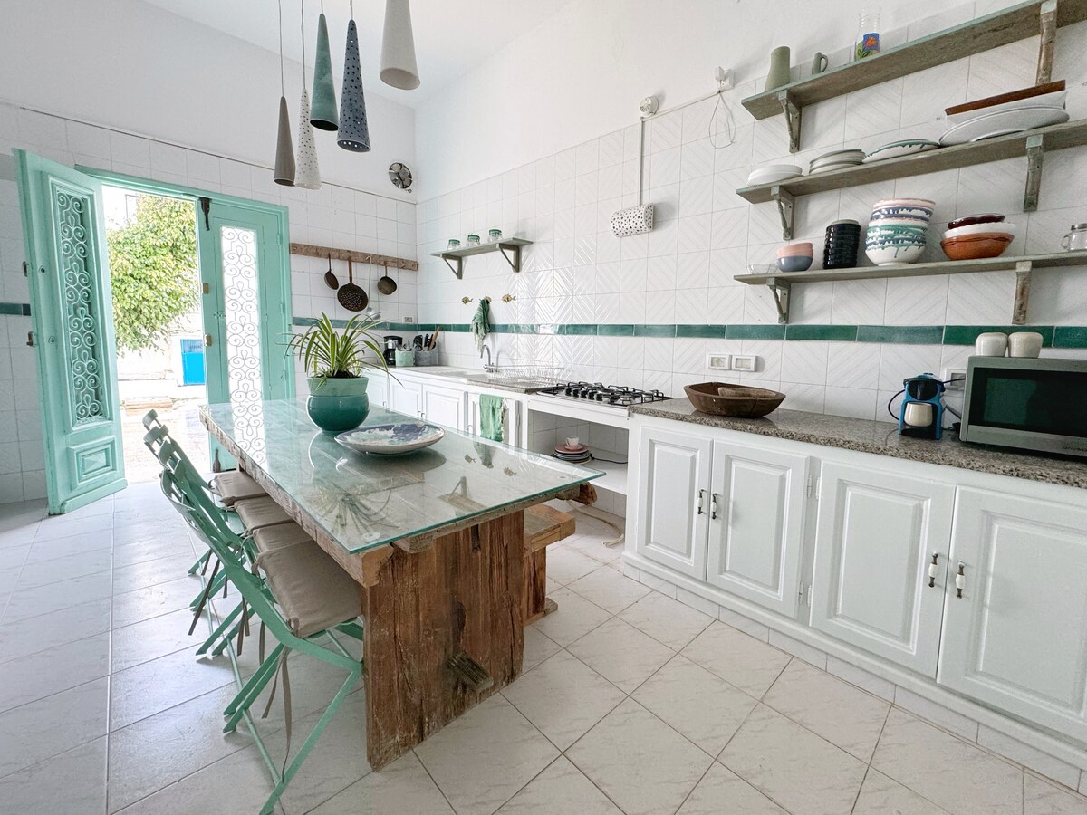 Denne bolig ligger i det historiske hjertet af Marsa Plage ved havet og er resultatet af en passioneret arkiteks, Aziz', vision som en hyldest til hans mor Badïa. Mellem moderne komfort og tunesisk håndværk inviterer det dig til et ophold fuld af kultur og følelser, forstærket af tilstedeværelsen af værker af tunesiske kunstnere. Her mødes gæstfrihed og kreativitet for at tilbyde en unik oplevelse. I nærheden ligger restauranter og livlige gyder, der udvider denne kulturelle og sanseoplevelse.