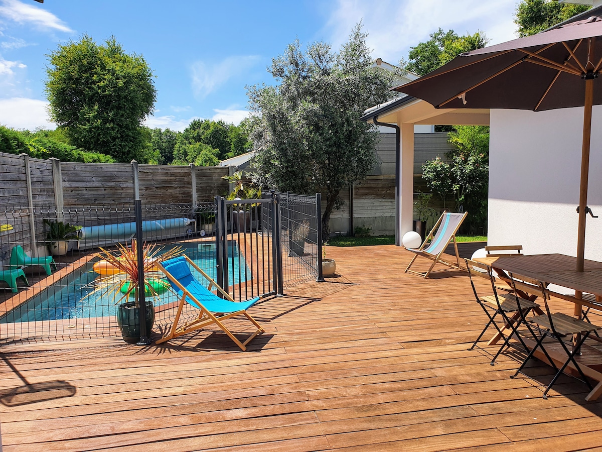Uafhængigt hus ved siden af vores hus i en skov beliggende i hjertet af vinmarkerne. Du kommer til vores bolig via en vinvej, der fører dig ind i skoven. Fredfyldt ophold for familien lige uden for Bordeaux (20 minutter fra centrum med bil, 15 minutter fra sporvognen, 7 minutter fra A62). Ideel til gåture i vinmarkerne i Pessac-Léognan eller i skoven. Bassin d'Arcachon ligger 45 minutter væk i bil. Butikker i nærheden (minimarkeder, restauranter, økologiske butikker ...).