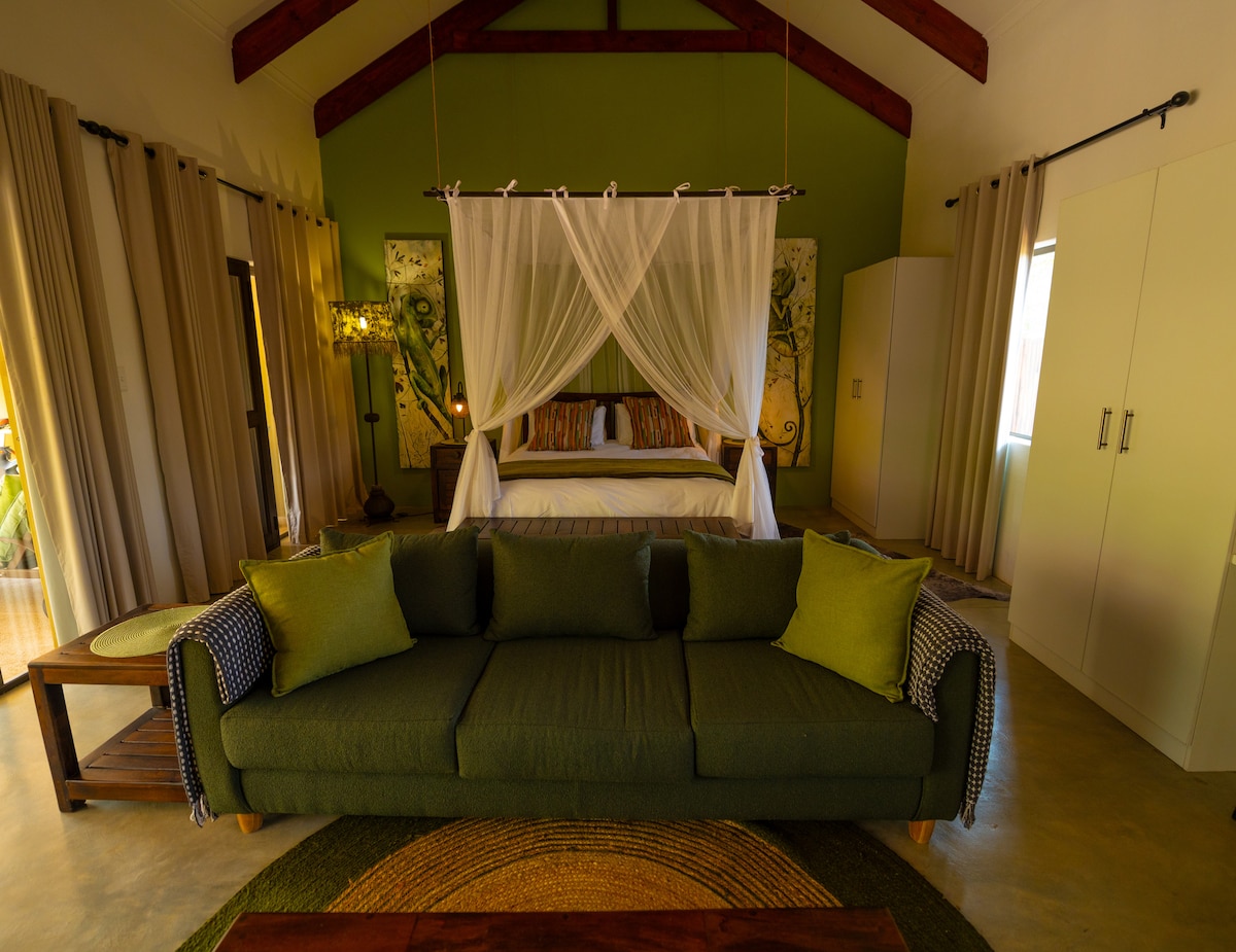 Find lidt ro midt i naturen omgivet af vilde dyr i vores miljøvenlige huse. Husene er helt uafhængige og respekterer miljøet, der er afhængige af solenergi. Vores mål er ikke at påvirke miljøet på nogen måde. De komfortable minihuse er fuldt udstyret med køkken, eget badeværelse og terrasse. Slap af på terrassen, mens du lytter til de mange vilde dyr, der er til stede på gården, såsom leoparder, giraffer, impalas og bøfler.