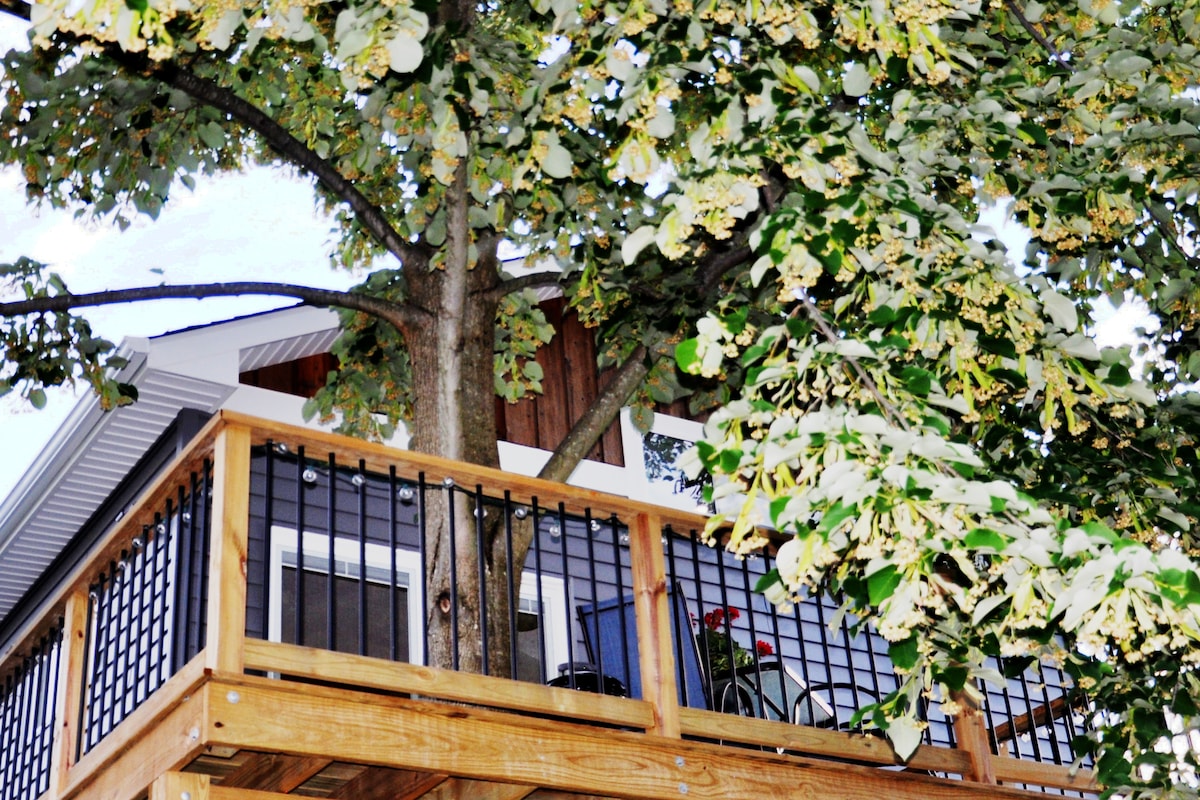 Nyt loft med udsigt til South River fra trætopshusets terrasse.