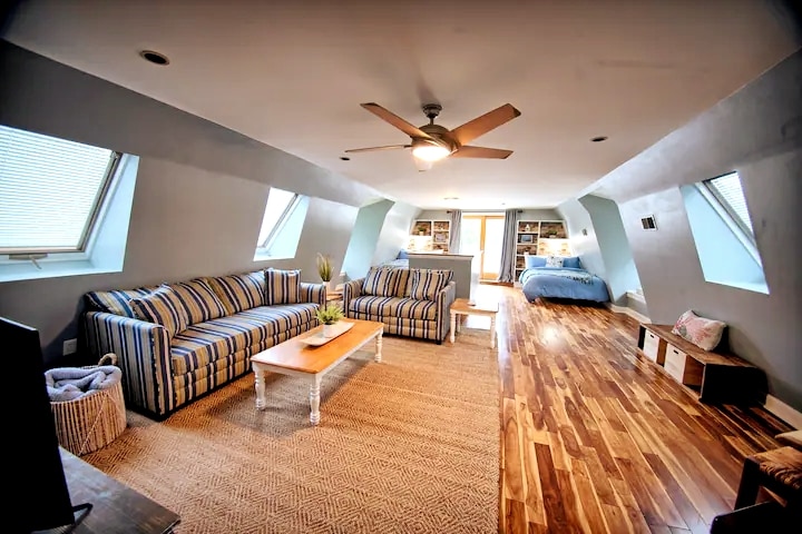 Se både sejle langs havnen fra din altan ved vandet med udsigt over Broadway Pier, Sagamore Pendry og Historic Thames Street. Vores uovertrufne beliggenhed i hjertet af Fell's Point ligger i nærheden af alle områdets topattraktioner! Træd ud af hoveddøren for at blive fordybet i brostenscharme med snesevis af restauranter, barer, butikker og butikker inden for få skridt. Prisvindende arkitektur, lokal kunst og særlige detaljer har glædet vores gæster i årevis: Vi håber, at din gruppe er den næste!