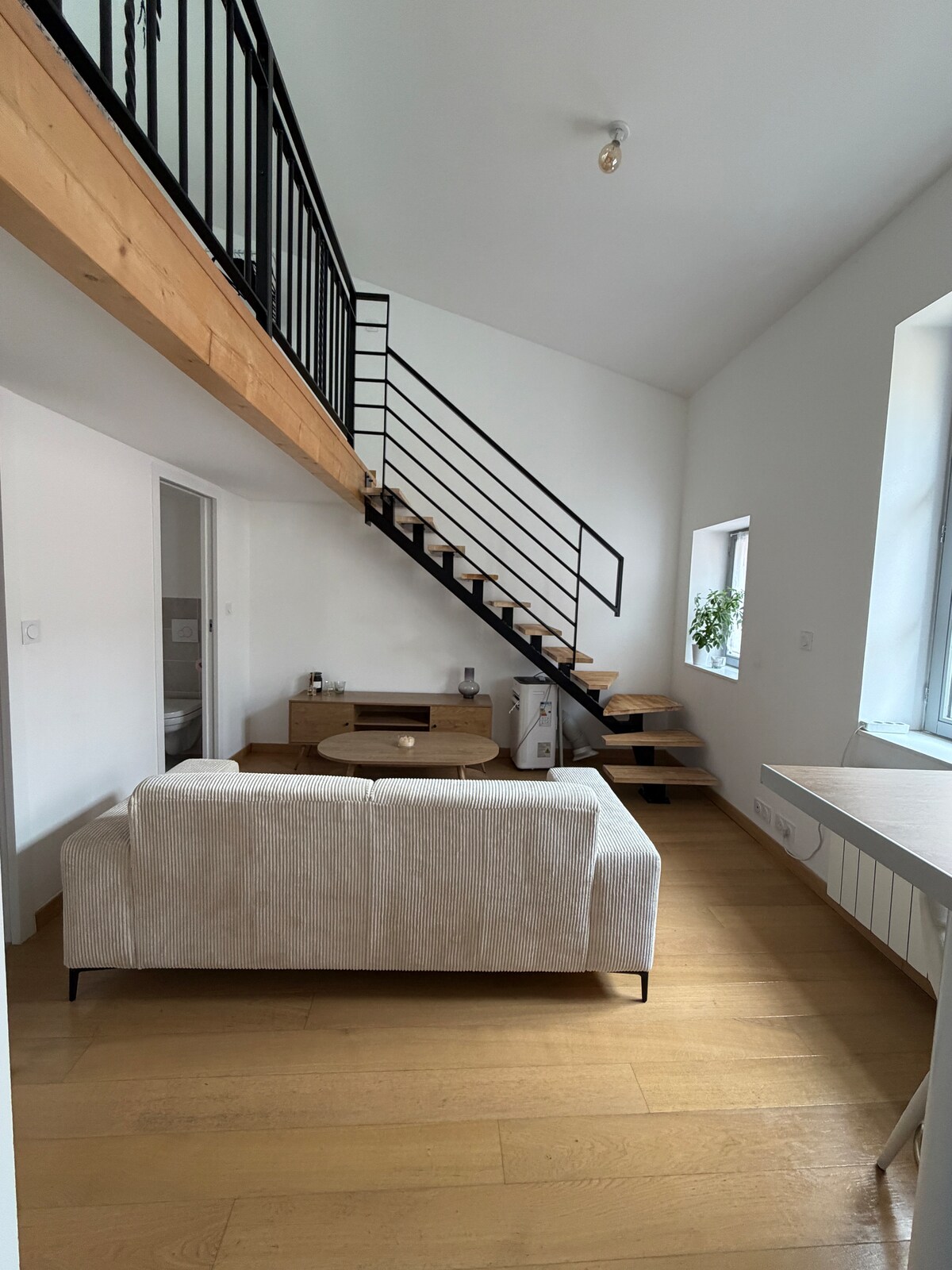 🏡 Varm duplex 40 m² – 5 min gang til station og centrum 🛋️ Stueetagen: lys stue med sofa og tv/internetområde. Fuldt udstyret køkken: induktionskogeplade, ovn, mikrobølgeovn, kedel, kaffemaskine... Alt for at føle sig hjemme! ; Et moderne badeværelse med brusekabine 🛏️ På mezzaninen: et 15 m² stort soveområde med en dobbeltseng; Et praktisk skrivebordsområde til arbejde eller læsning ✨ En ideel kokon til et ophold som par, alene eller på forretningsrejse