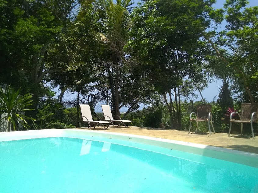 Vores hus er ventileret og komfortabelt. Uafhængige hytter, køkken (køleskab, komfur, stue til gæster) og swimmingpool. Værelse med aircondition , badeværelse, varmt brusebad, balkon, omgivet af træer midt i Sapiranga-reservatet og med udsigt over havet. Tilfredsstillende mobiltelefon og wi-fi afhentning. Det er omkring 4 km fra Praia do Forte. Tæt på smukke strande: Itacimirim, Imbassaí, Santo Antonio og Sauípe. Hver Chalet har plads til 2 personer.