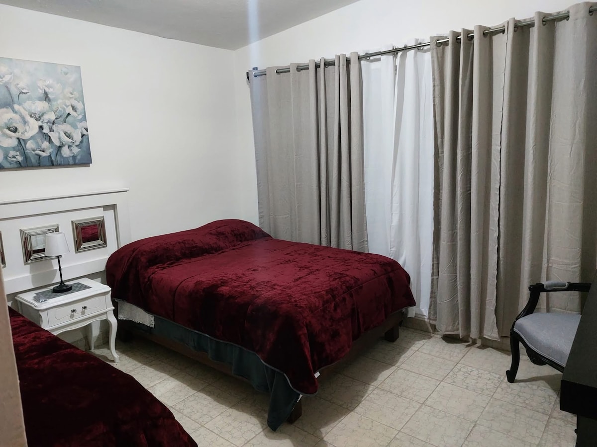 Fremragende og komfortabel lejlighed på øverste etage med uafhængig og selvstændig adgang. Med en strategisk beliggenhed i Col. Luftfart i Cd. de Matehuala, hvor du finder restauranter, banker, apoteker, selvbetjeningsbutikker og hospitaler og kun 50 minutter fra den gådefulde magiske by Real de Catorce. Boligen har to soveværelser, der er udstyret med en dobbeltseng til op til fire gæster, der deler badeværelse Parkering er gratis på gaden, hvilket er meget sikkert.