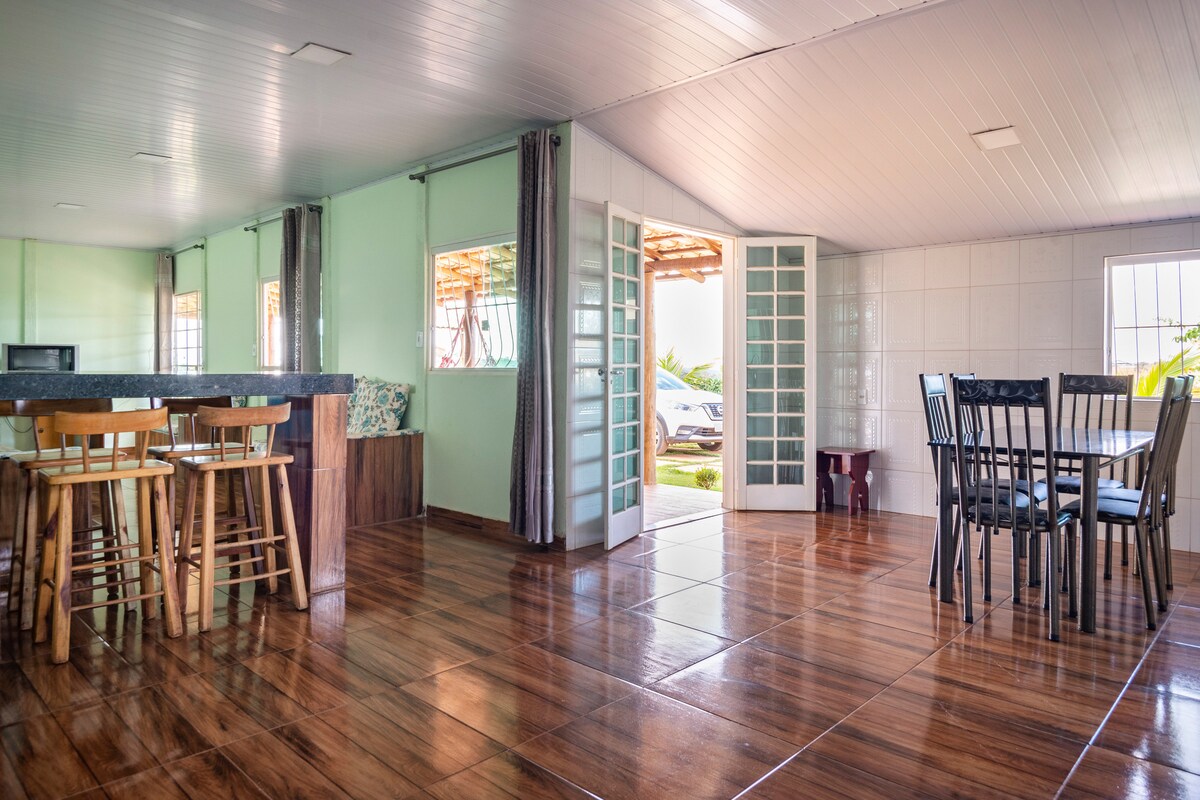 Stort hus med 3 suiter, komplet gourmetområde, pool og bjergudsigt. Perfekt til familier og grupper med et udstyret køkken, wi-fi og fritidsområder såsom et poolbord og en luftig balkon. Komfort, praktisk og god plads til at nyde øjeblikke sammen. Huset ligger i et lukket område, der er fantastisk til at slappe af og nyde tiden med din familie.