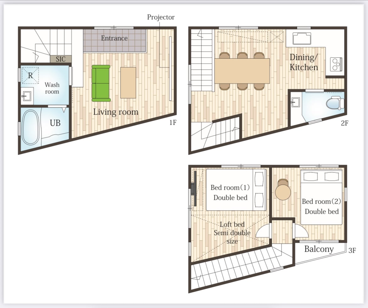▼Adgang ・ Urawa St: 2 minutters gang (nordudgang, kun IC-kort 7:00-24:15) ・Direkte tog til Ueno (20 m), Shinjuku (25 m), Shibuya (30 m), Tokyo (26 m). Omiya (7 min.), Shintoshin (3 min.) ▼Layout: 1. sal: Stue (projektor), bruser/badekar, vaskemaskine. 2F: Køkken/spisestue/toilet (IH, køleskab, køkkengrej). 3F: Soveværelser (loft, balkon med udsigt til tog). Aircondition på alle etager. ▼Faciliteter: ・Wi-fi, tv, indtjekning uden vært. Senge: 2 dobbeltsenge + 1 dobbeltmadras. ・Håndklæder, toiletartikler (shampoo, ansigtsvask, creme). Ørepropper medfølger