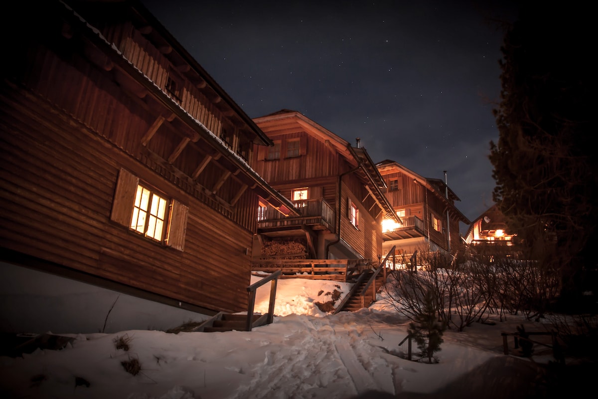Eksklusiv panorama-chalet midt blandt de højeste bjerge! Slap af i denne særlige og afsides beliggende bolig. Lad din sjæl svæve, og slap af fra hverdagens stress i en betagende bjergverden. Nyd hyggelige aftener foran pejsen eller slap af i saunaen. Fra spabadet kan du nyde den frie udsigt over de omkringliggende bjerge. Den vidunderlige panoramaterrasse og den store vinduesfront giver en enestående udsigt.
