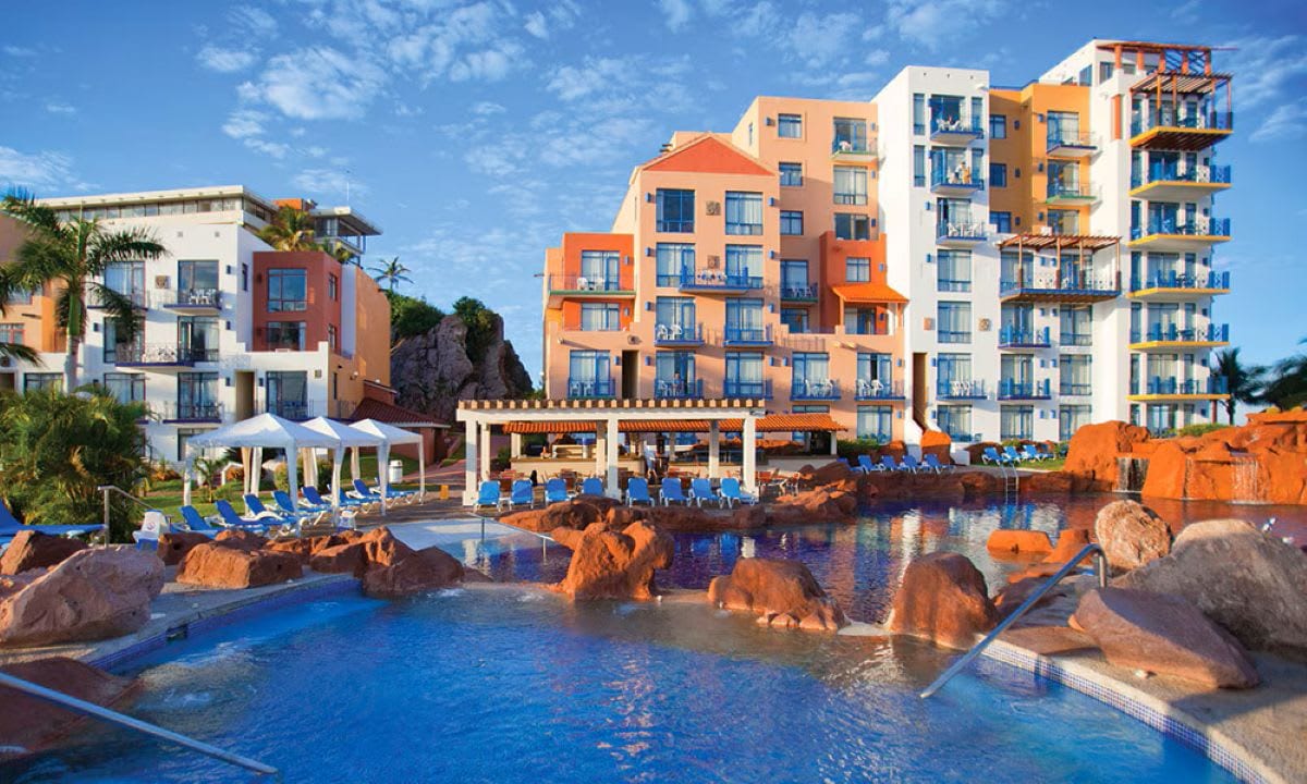 Nestled among the docks of Mazatlan’s Golden Zone marina, this Mediterranean-style resort forms a waterfront oasis that’s ideal for laid-back afternoons and seafaring adventures. Soak up some rays by two outdoor pools — one with swim-up bar, the other with slides and underwater caves. Or take the resort's water taxi to a secluded white-sand beach nearby.