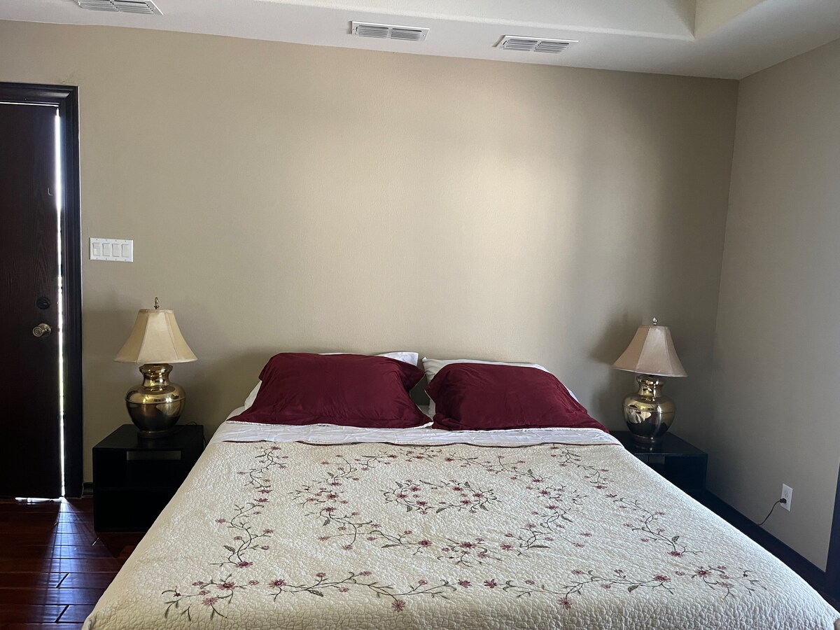 Er du her for at kigge på fugle? Har du brug for at være tæt på UTRGV, DHR eller andre hospitaler i McAllen/Coliano-området? Eller måske er du her for at besøge familien. Så er du kommet til det rette sted. Velkommen til den store suite i mit hjem! Der er egen indgang fra den bageste terrasse. Det omfatter et soveværelse, stuen, masser af skabsplads og et stort hovedbadekar. Det eneste fælles område er den bageste terrasse.