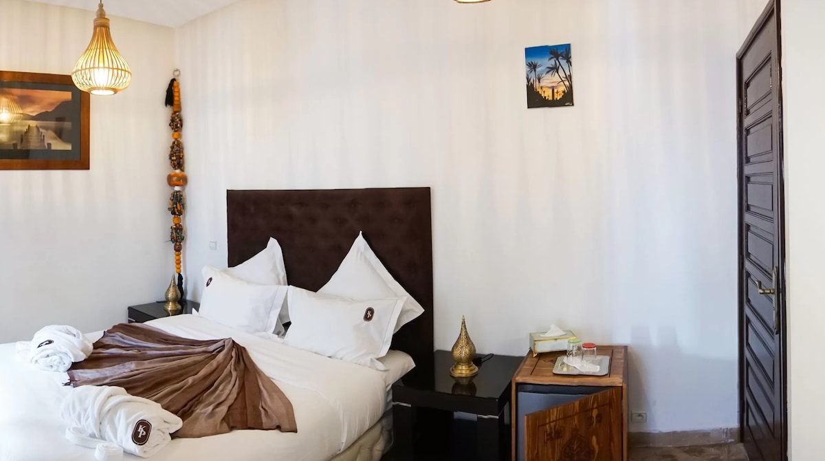 MAISON KA HOTEL OFFERING: ENSUITE BEDROOM, CAN SLEEP 4 PEOPLE. 2 DOUBLE BEDS +AC, HEATING, COOLING SYSTEM PRIVATE SHOWER, TOWELS, BED LINEN, HAIR DRYER, HIGH SPEED WIFI, DRESSING MIRROR. 4 SINGLE BEDS OPTION IS AVAILABLE ON REQUEST EXTRA NOT INCLUDING IN YOUR BOOKING: CITY TAX IS €2.50 PER PERSON PER NIGHT BREAKFAST IS €6 PER MENU HAMMAM & SPA BODY TREATEMNTS. COOKING CLASS/ MOROCCAN CUISINE. LUNCH, DINNER, MINI BAR. AIRPORT TRANSFER, DESERT EXCURSION, CAMEL RIDE, QUADE BIKE EXPERIENCE.