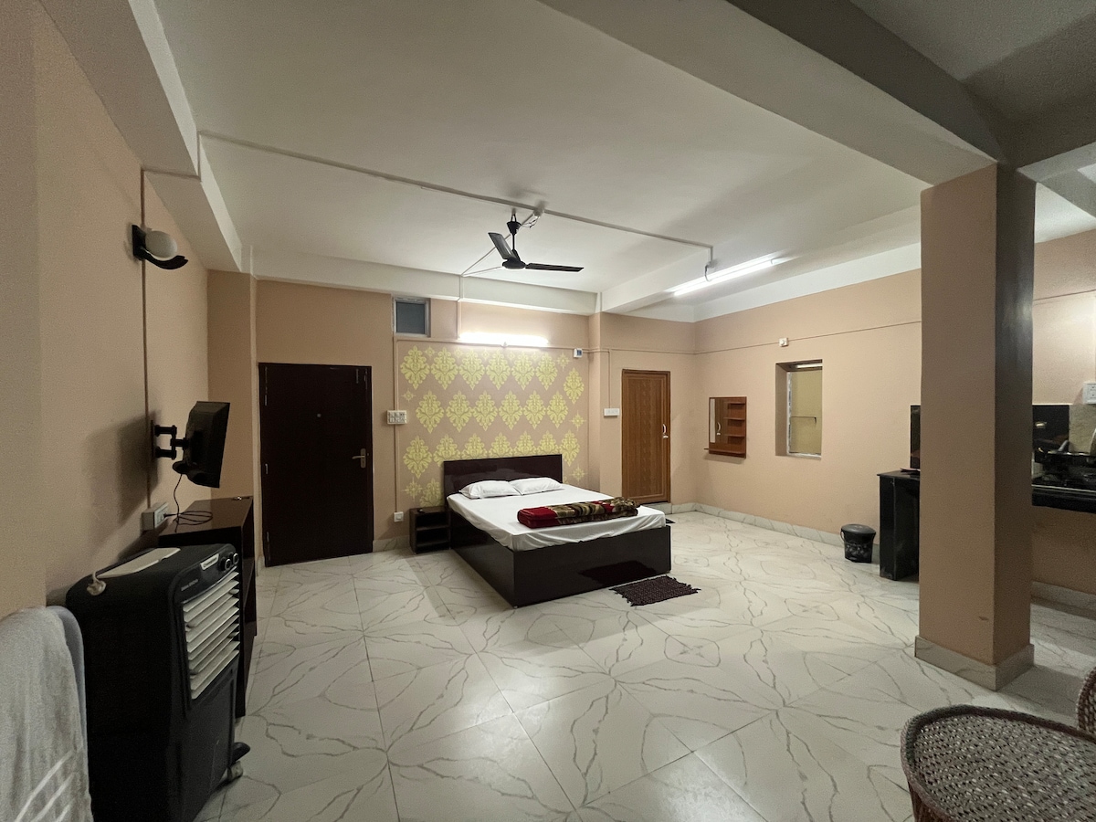 Centralt beliggende i hovedstaden Shillong, der tilbyder et fredeligt miljø, perfekt til udflugter/lange ophold/arbejde. Ejendommen er bekvemt beliggende i nærheden af Pantaloons og ligger 0,5 km (5 minutters gang) fra Laitumkhrah, som er et af de vigtigste knudepunkter i Shillong. Værelset er rummeligt (16x14) med tilknyttet badeværelse og et køkken. Det er veludstyret med et smart-tv, wi-fi, gejser og andre basale faciliteter. Der er mulighed for parkering på området. Jeg glæder mig til at have dig ombord!