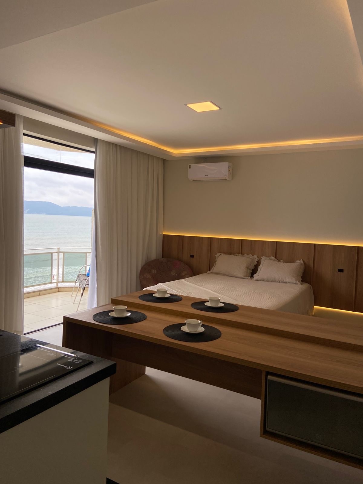 Med panoramaudsigt over havet fra den store stuevindue og køkkenet og også udsigt fra suiterne er beliggenheden virkelig privilegeret, kun et par skridt fra stranden. 2 komfortable og airconditionerede en-suiter, stort toilet, integrerede stuer og køkken, 65-tommers tv i stuen. Nyd utrolige dage med al den komfort, ro og stilhed i en bygning med kun 7 lejligheder og ingen byggeri ved siden af🙌!! Tæt på bageri, restauranter og strandbarer. Kom og hvil, og nyd denne unikke og specielle bolig