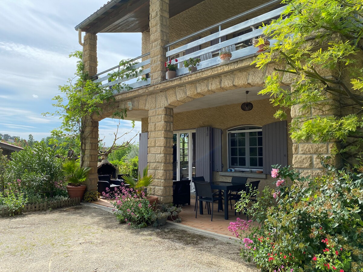 Denne uafhængige, fredelige bolig med terrasse, pergola og privat have tilbyder et afslappende ophold for et par eller en lille familie, der har brug for sol, hvile og svømning i en smuk pool, der er åben fra begyndelsen af maj til slutningen af september. Boligen er meget veludstyret..., filterkaffemaskine, kedel, ovn, mikrobølgeovn, komfur, vaskemaskine, tv, højhastighedsinternet, aircondition, kvalitetssengetøj, lagner og håndklæder og viskestykker.