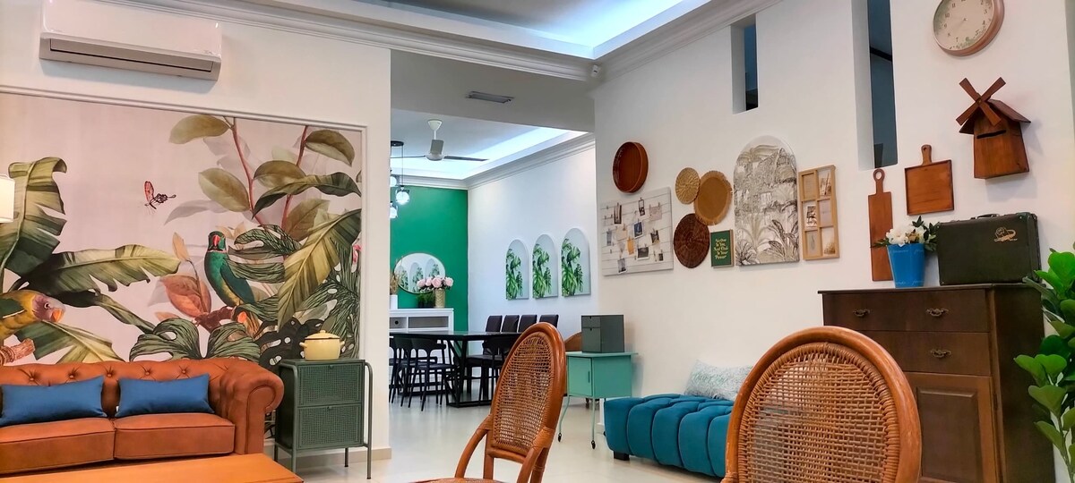 Et moderne, stilfuldt og smukt renoveret 2-etagers halvt fritliggende hus i et roligt kvarter. Alle 3 soveværelser, stue, spisestue og tv er veludstyrede med aircondition. Ideel til familiesammenkomst og feriested. Strategisk placeret, tæt på populære turistattraktioner og berømte madelskere. Kørsel (min) til 1. Klebang Original Coconut Shake (5 min) 2. Kuih Keria Antarabangsa (8 min) 3. Mango Float Royale (23 min) 4. Jonker Walk (16 min) 5. Dataran Pahlawan (19 min)