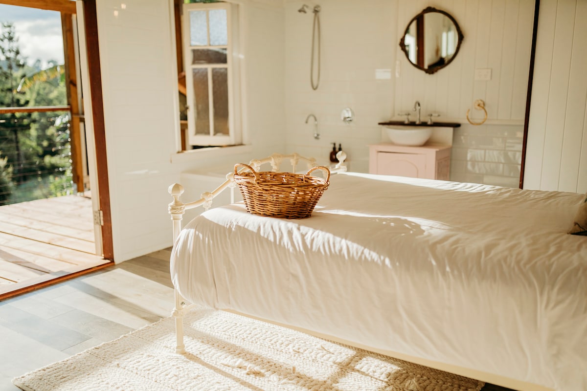 Parrets hytte er en af tre tætliggende pavilloner på The Bower, et rustikt regnskovsferiehus. Det er en lille landsby kun 10 minutter i bil fra Maleny og 20 minutter til Woodfordia. Slap af foran den varme brændepejs, nyd det rige fugleliv fra din private terrasse, nyd det antikke badekar med løvefødder, og lad dig rive med af den himmelske udsigt. Inkluderer: let morgenmad*, gratis wi-fi, Foxtel, et skævt professionelt køkken, romantiske detaljer, kvalitetslinned, brænde** og en pool i bushen*.