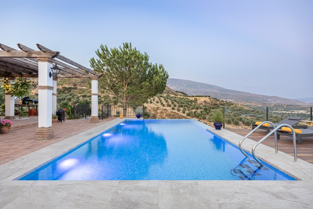 I hjertet af naturen i Rio Torrente-dalen grænser cortijo op til naturparken Sierra Nevada. Pool med fantastisk bjergudsigt. Inden for 5 minutters gang fra den maleriske 'langsomme' landsby Niguelas. Aguas Calmas ligger mellem to traditionelle acequias (vandløb). Fremragende vandrestier fører ind i bjergene. Perfekt base for Granada, strande, Alpujarra og skiløb. Godt vejr hele året. Et paradis for vandring, cykling, gastronomi, afslapning ved poolen eller fjernarbejde. Fantastisk wi-fi.