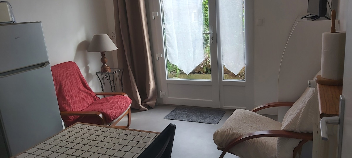 I et roligt kvarter, tæt på butikker, vil denne bolig, takket være sin beliggenhed, give dig mulighed for hurtigt at nå motorvejen, strande, Lorient bymidte, eller nyde haven. Den består af et fuldt udstyret køkken, et badeværelse/WC, et soveværelse med adgang til haven gennem en dør. I denne have står bord, stole, liggestole, parasol og grill til din rådighed.