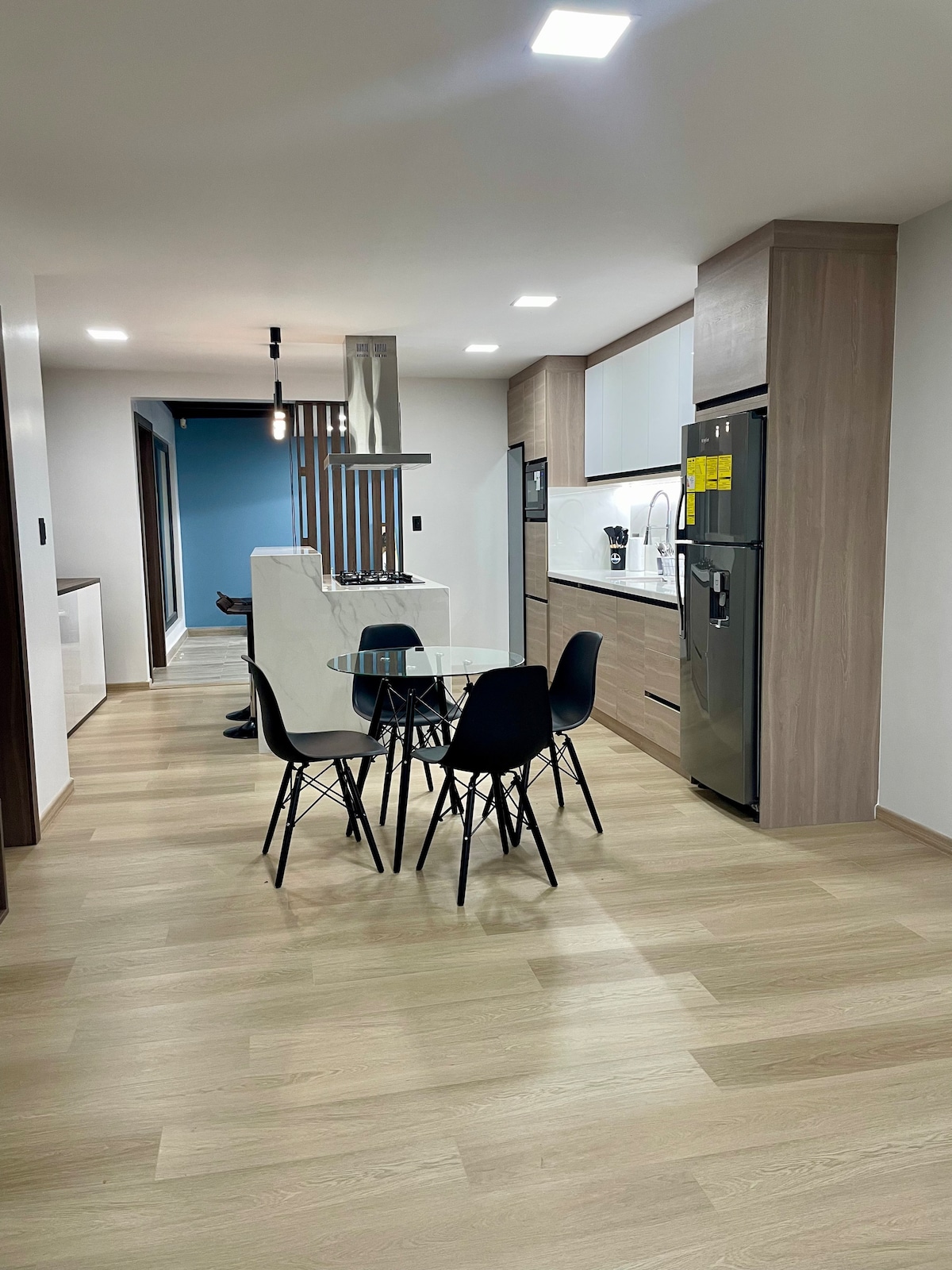 Elegant loft med kvalitetsfinish, perfekt til ledere/rejsende, der søger maksimal sikkerhed og komfort. Nær Quinta Lucrecia, Mall del Río, Supermaxi. Omfatter: – Daglig gourmetmorgenmad (frisk juice, 2 æg, toast). Serveres ved din dør (kl. 8-10). Ikke tilgængelig om søndagen – Wi-fi 6. - Sikker garage. - Smartlåse, 65" smart-tv, elektrisk pejs. – Håndklæder, shampoo, sæbe. – Fremragende beliggenhed, komfort og sikkerhed garanteret! (Undgå at bruge håndklæder til at fjerne makeup).