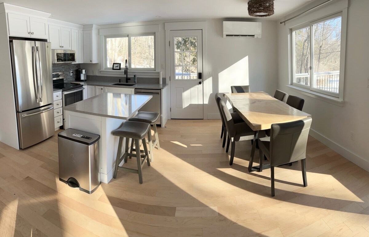 Det er også tæt på Mills Falls i Meredith, tæt på skiløb, afslappede og fine spisesteder, kunstbutikker, vingårde, teater, kunst og antikvitetsbutikker, kun få minutter til 2-4 timers vandreture med fantastisk udsigt over White Mountains og Lake Winnepesaukee, en smuk Association Beach, og familievenlige aktiviteter. Du vil elske min bolig på grund af den komfortable seng, køkkenet, de høje lofter, renligheden og hyggen. Min bolig er god til par, solo-eventyrere, forretningsrejsende og familier (med børn).