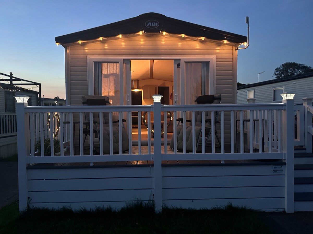 Vores feriehus ligger kun få minutter fra stranden og er en hyggelig, veludstyret, 35 fods fast campingvogn med 3 soveværelser og fritidsdæk. Beliggende i en rolig beliggenhed på West Merseas Waldegraves Holiday Park. Smuk havudsigt, fantastiske solnedgange og en privat have til at slappe af i. Parkens faciliteter/underholdning for familier er lige i nærheden. Fisk og skaldyr har været Merseas specialitet siden romertiden. Colchester, en kort køretur væk, tilbyder en bred vifte af fritids- og underholdningssteder.