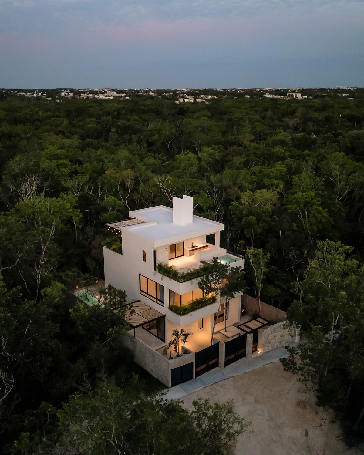 Luksuriøs designpenthouse beliggende i Tulum, som kommer med unikke funktioner som dobbelt højt loft, stor tagterrasse pool, et luksuriøst high-end højttalersystem fra Bang & Olufsen, smuk sengetekstiler og store rum med unik dekoration beliggende i det mest trendy område i Tulum. Udover concierge-tjenester tilbyder ejendommen 2 højhastigheds fiberoptiske internetnetværk for den bedste service i Tulum. Dette fredfyldte, elegante og rolige sted er en designhimlen!