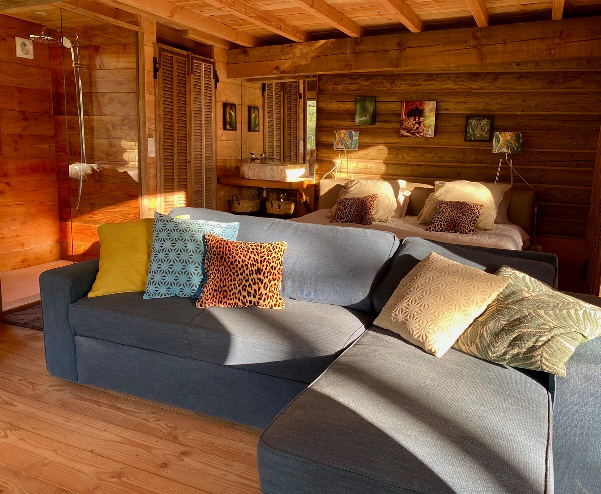 Midt blandt træerne, midt i Cassidains vinmarkerne, tilbyder vi dig en selvstændig bolig, der er helt beklædt med træ. Denne bolig vil forføre dig med sin direkte kontakt med naturen, uden visuel eller lydmæssig forstyrrelse. Og for at køle af, tilbydes du adgang til swimmingpoolen; En luftrejse, ophængt i træerne, venter på dig ...