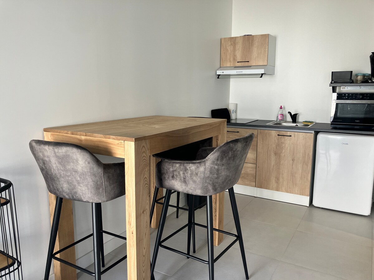 ✨ Nyd dette rolige og fuldt udstyrede 16 m² store studie, der ligger i Olivet. ✨ Denne uafhængige bolig ligger i et roligt boligområde og er perfekt til en forretningsrejse eller en afslappende pause. 🌿🚋 📍 Foran et grønt område, tæt på Loirets bredder, hvor du kan gå ture. Alle faciliteter nås til fods. Nem adgang: elektrisk port med bip, nøgleboks, privat parkeringsplads. 🅿️🔑