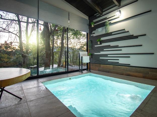 Hermoso chalet para pareja con: - mini alberca climatizada - cómoda cama King size - cocina equipada (utensilios de cocina) -microondas - maquina de Nespresso (cápsulas, endulzante y té) - smart tv con wifi Área exterior - asador - comedor al aire libre - hamaca Disfruta del fácil acceso a todo desde este alojamiento perfectamente ubicado, a tan solo 5 minutos del centro.