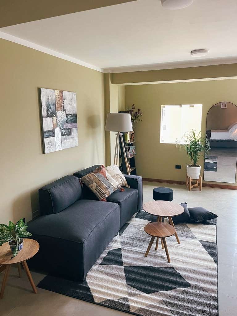 Rummelig og komfortabel lejlighed på 3. sal, hvor du vil have et roligt og sikkert ophold. Beliggende kun 5 minutter fra centrum og Paseo Cívico, tæt på Plaza Vea, boticas, spisesteder og butikker. Den har to soveværelser, hver med to senge, fuldt udstyret køkken (blender, mikrobølgeovn, blender, elkedel, redskaber) Stue med tv (Netflix og MagisTV) og et komplet badeværelse. Faciliteterne omfatter varmt vand, wi-fi og udendørs sikkerhedskameraer.
