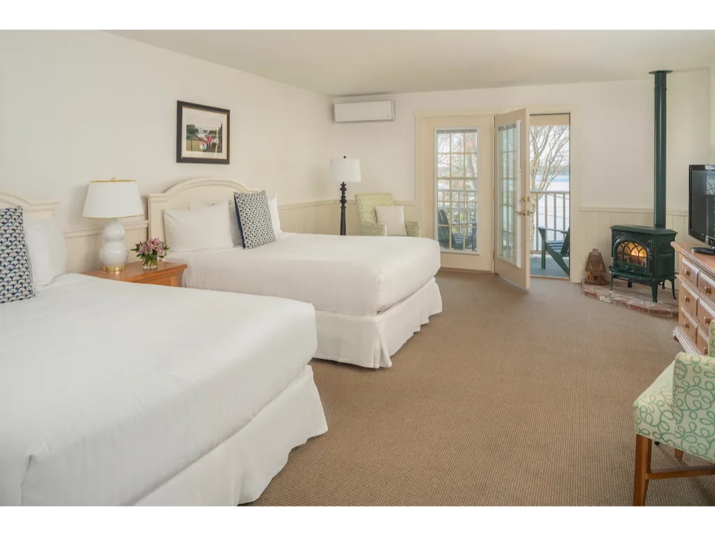 Uanset om du rejser med venner eller familie, er vores skønne Lodge Room i Boothbay Harbor den perfekte smuttur for dig! Nyd afslappende dage ved udendørs poolen, eller nyd nogle af de mange vandaktiviteter, der er til rådighed. • Lodge-værelse med 2 queensize-senge • Privat veranda • HAVUDSIGT • Se dit yndlingsprogram på fjernsynet • Hyg dig ved gaspejsen • iPod-dockingstation • Fælles udendørs pool + spabad • Spa på stedet • Gratis transport til centrum • GRATIS PARKERING