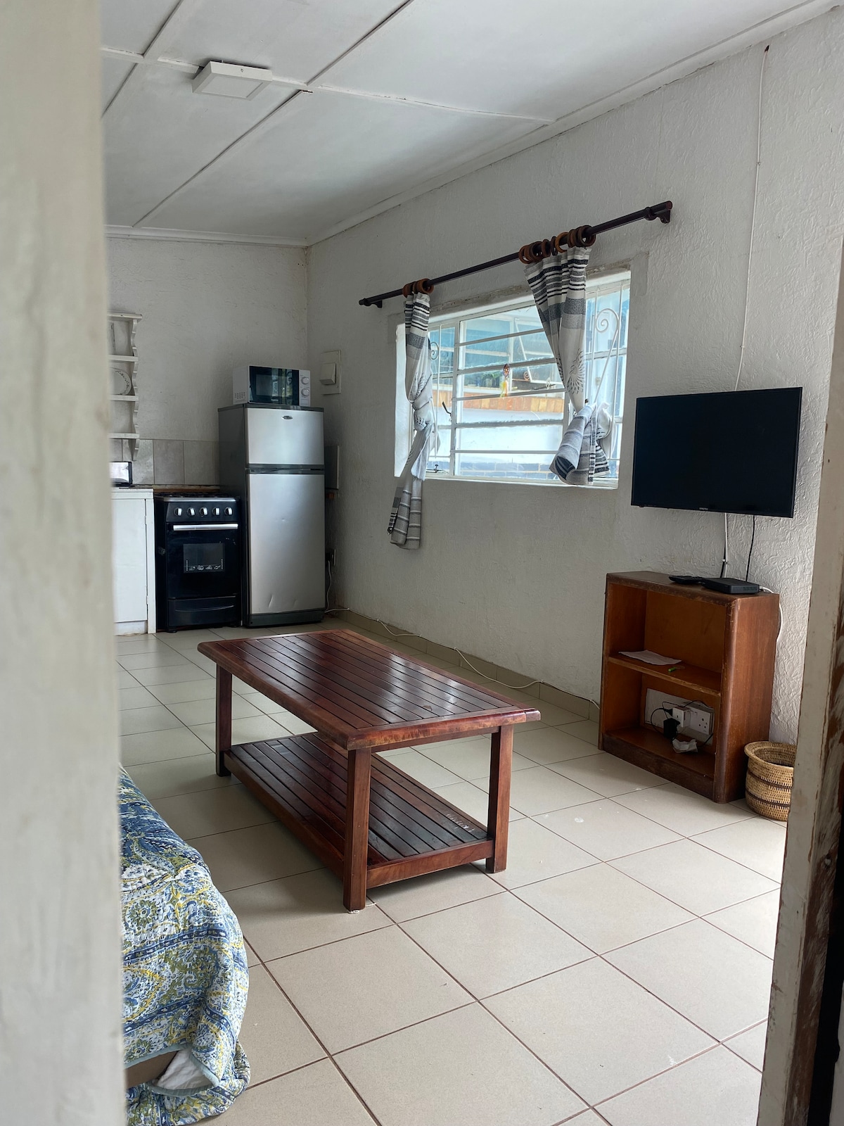 Omgiv dig med stil i denne enestående bolig, der er fantastisk bygget til at give gæsterne en hjemlig følelse. Selinas komfortable hytte har alt, hvad du har brug for, med en hyggelig queen size seng og en stue med to individuelle komfortable sofaer, en bar og et tv tilsluttet DSTV premium. Vores fuldt funktionelle køkken vil få dig til at tilberede lækre måltider komfortabelt med nem adgang til nyheder på lounge-tv, da hytten er en åben planløsning.