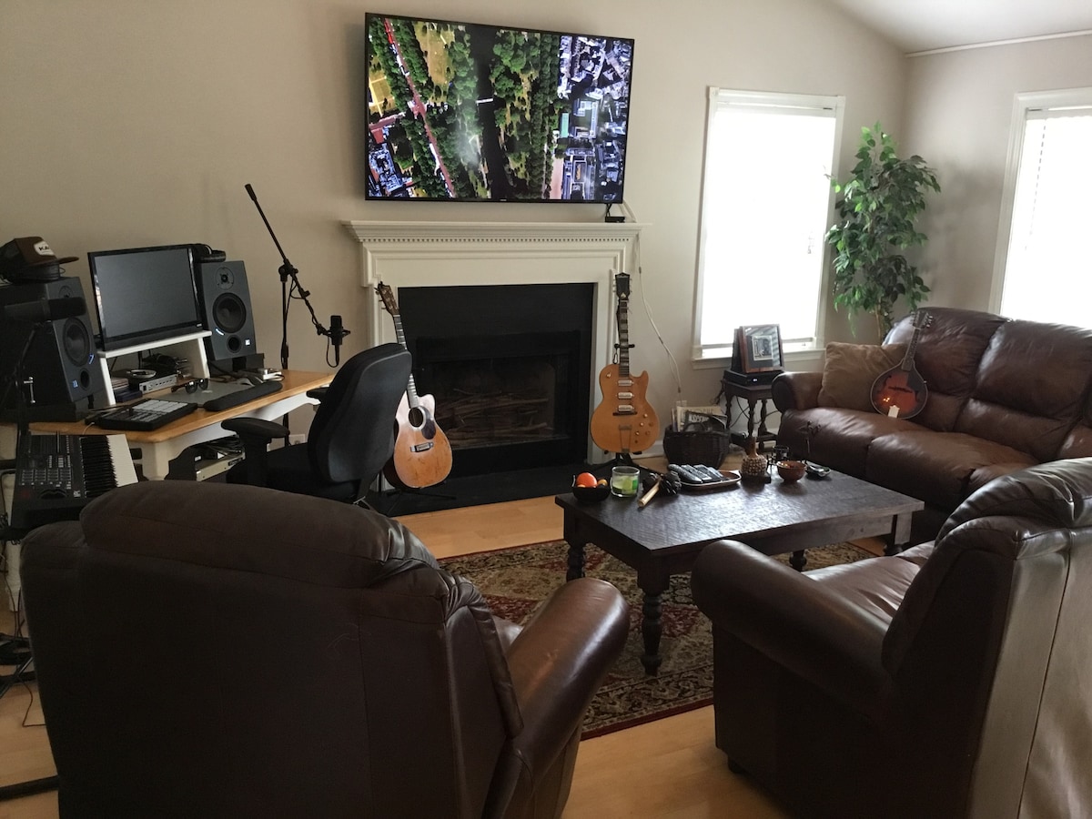 Vores nyrenoverede 1 soveværelse, 1 badeværelse er en del af vores duplex-hjem. Vi bruger det som kontor i løbet af ugen, men har besluttet at lade andre nyde det i weekenderne. Der er et fuldt udstyret køkken samt spiseområde, og sofaen i stuen kan trækkes ud til en seng med en superkomfortabel memory foam-madras (så vi kan sove 4, hvis det er nødvendigt). Alt i huset, selv om vi bruger det meste af skabspladsen til opbevaring og måske har et par madvarer i køleskabet/fryseren. Hvis dette er et problem, skal du kontakte os, så fjerner vi dem. Vi har også brætspil til alle forskellige niveauer, som du frit kan bruge. Vi bor i den større del af duplexen, så vi er tilgængelige efter behov, men du har også så meget privatliv, som du vil. Jeg skal bemærke, at vi har 3 børn, så du hører måske små fødder, der trommer, men væggene mellem de to sider er tykke nok til at dæmpe det meste af lyden. Beliggende i nærheden af mange interessepunkter, såsom Mas Tacos og apoteket, samt Five Points, Nissan Stadium og Downtown, ligger dette hjem på en gade, der er travl nok til at være tæt på alt, men rolig nok til at gå fredeligt til mange attraktioner. East Nashville er et hip og blomstrende kvarter med musiksteder og butikker, der kan udforskes, og masser af gode restauranter inden for gåafstand. Gå/cykel/uber/lyft er alle gode muligheder! Vi kan ikke garantere det uden dit varsel, men hvis du giver os besked i forvejen, kan vi normalt reservere en pakke og legeplads til en baby. Tilladelsesnummer til korttidsudlejning i Nashville: (TELEFONNUMMER SKJULT) Alle priser inkluderer alle gældende momssatser.