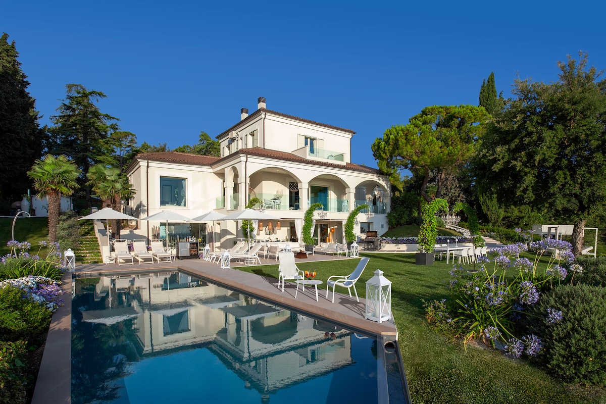 Den rummelige og smukt indrettede Villa Belvedere giver en ægte italiensk oplevelse og er storslået beliggende i et unikt hjørne af den gamle landsby Bertinoro med en fantastisk udsigt til de fredelige og maleriske Romagna-bakker, havet og kystlinjen. Infinity-pool opvarmet efter anmodning, spabad, sauna, dampbad, professionelt fitnessrum; biografrum, billard, barhjørne med vinkælder, fuldt møbleret og omhyggeligt designet og vedligeholdt have med grill og udendørs spil.