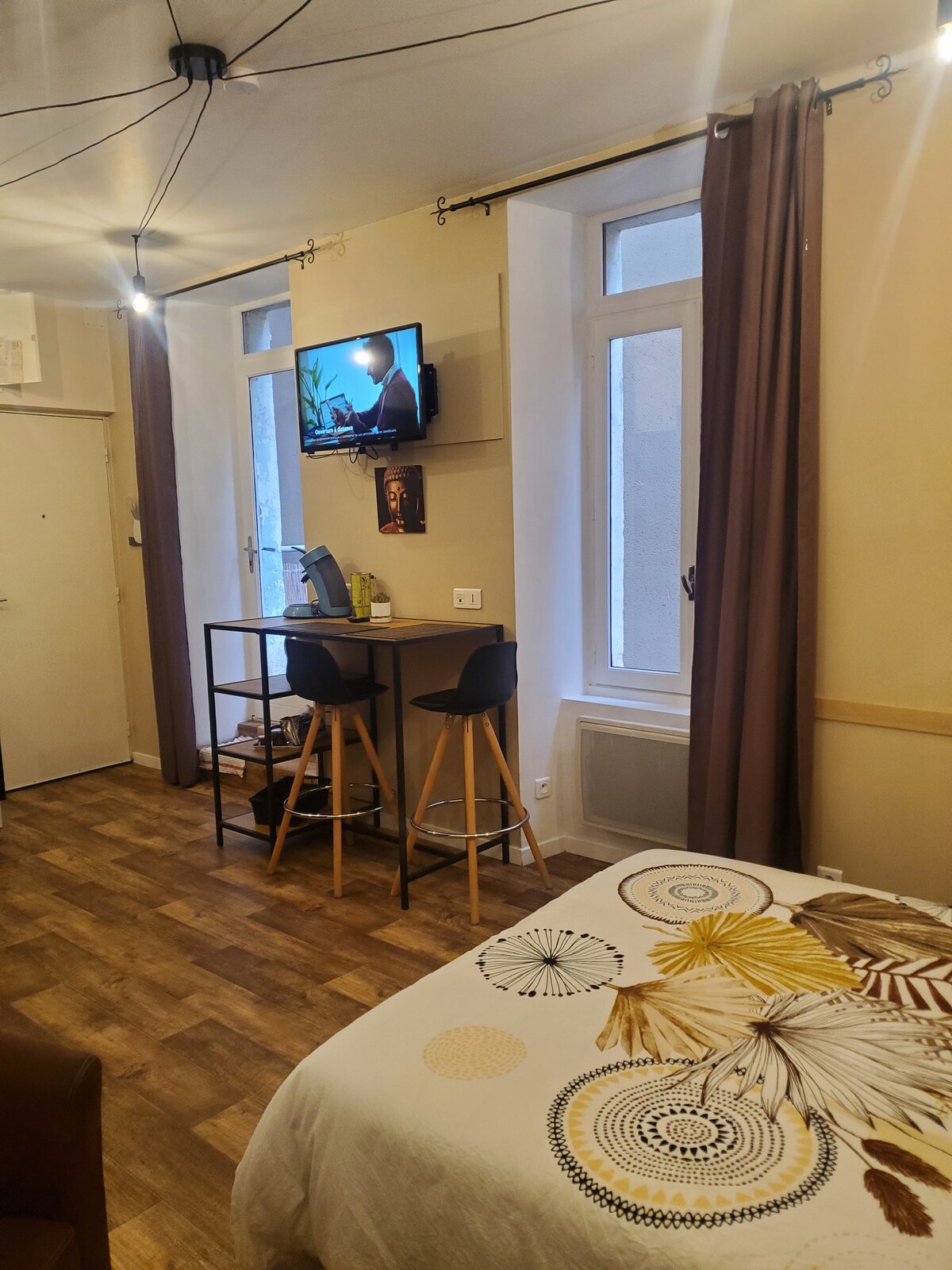 Lejligheden på 40 m² ligger i en rolig lille gågade nær Place Foch. Boligen ligger på første sal. Den omfatter et køkken og opholdsområde med sofa, et badeværelse (bruser og toilet) og et soveværelse med dobbeltseng. Indgangen er uafhængig. Fælles områder: Vi bor ved siden af, men under opholdet kan du benytte den lille gårdhave med havebord og stole samt et vaskerum med vaskemaskine og til cykler eller andet.
