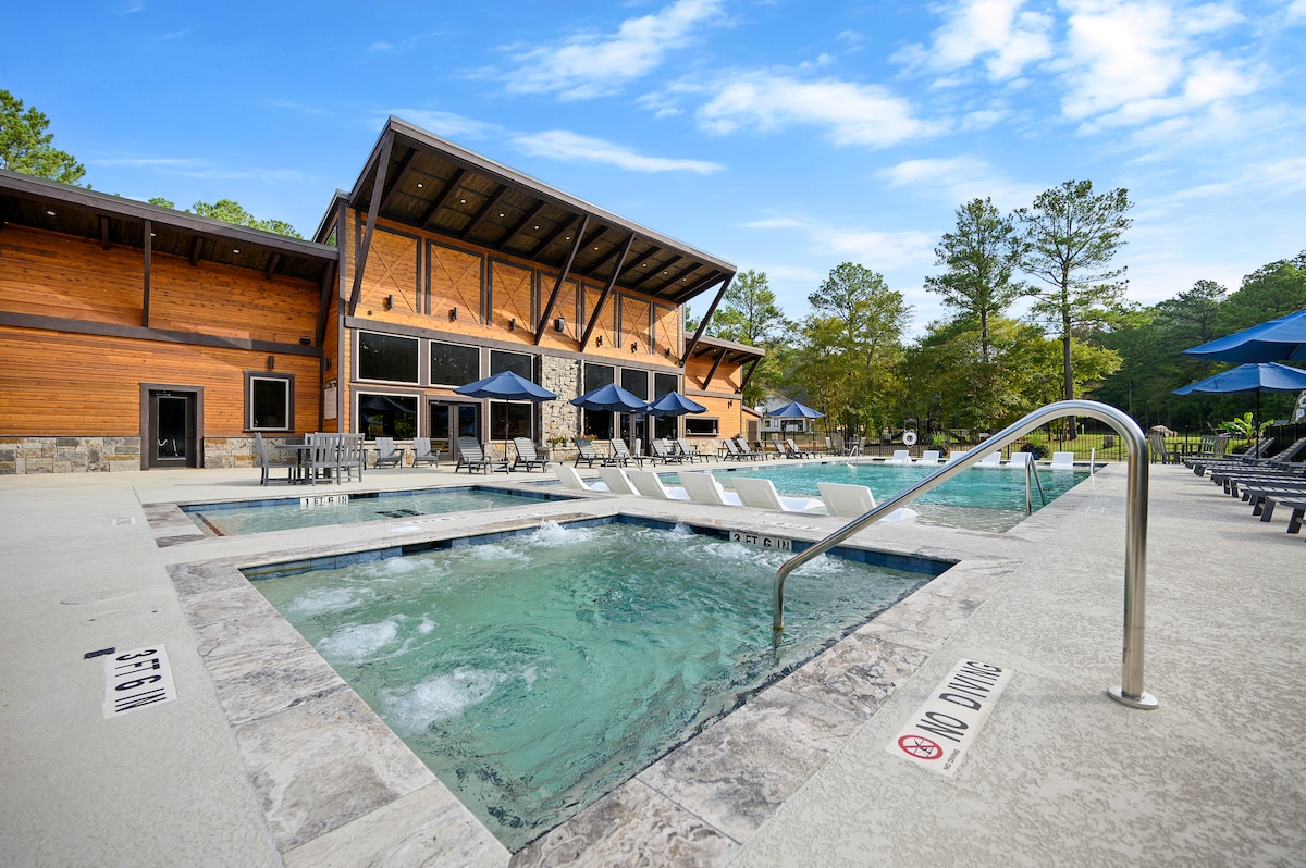 Nyd denne hyggelige oase, der ligger i et dejligt skovområde på 3 hektar. Dette sted tilbyder et ideelt feriested året rundt. Beliggende på ejendommen med en privat dam. Fiskeri tilladt, fang og slip igen, tak. Til din afslapning er der et bålsted og en grill, ideel til grill og afslapning efter en lang dag i solen. Eller lad være med at lave mad overhovedet, og nyd vores lokale restauranter og shopping.