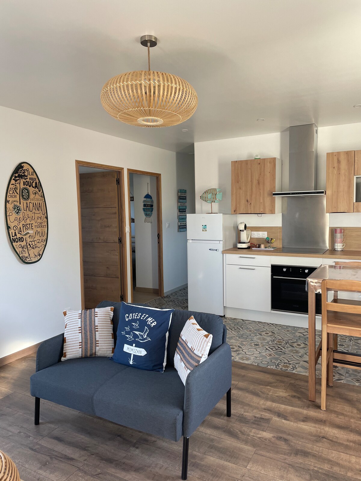 « La Casa Del Rio » Classée ⭐️⭐️ sur le Bassin d’Arcachon À Gujan-Mestras, T3 de 42m2 avec terrasse, paisible offrant un séjour détente pour toute la famille Cette location au style des cabanes ostréicoles comprend deux chambres.( un lit en 160 et lits superposés en 90) *L’appartement est climatisé, équipé wifi *Linge de lit et bain fournis Ménage compris *Terrasse privative de 25m2 *Possibilité d’ une arrivée autonome. ⚠️⚠️⚠️JUILLET/ AOÛT : Location à la SEMAINE du samedi au samedi ⚠️⚠️⚠️