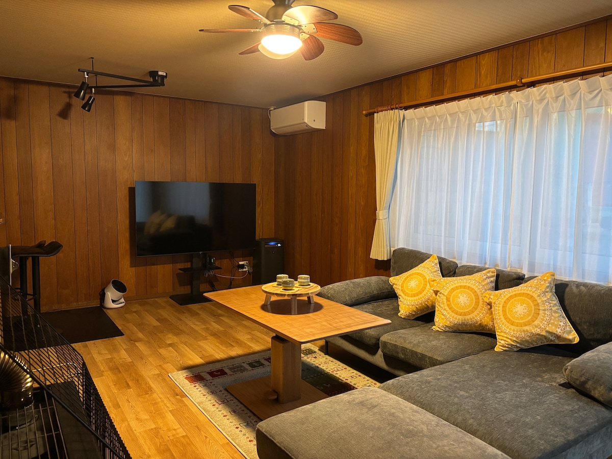 Includes 5 bedrooms plus a large living area. Stylish & Functional Plenty of storage ensures a clutter-free stay, even for large groups. Social & Private Spaces Gather together in shared areas or relax in your own room. 120-inch screen Enjoy movies with a projector . Nearby supermarket. Perfect for families or groups! BBQ & private sauna. [Option Set: ¥24,000] *There is only one air conditioner in the living room. (There are multiple electric fans.) Heating is provided in each room.